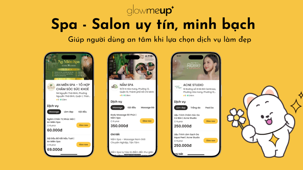 Lựa chọn cơ sở làm đẹp uy tín – mạnh bạch trên ứng dụng GlowMeUp