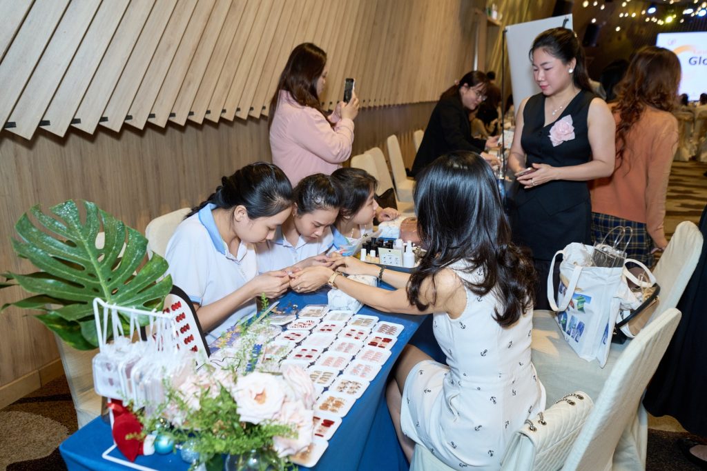 Khách hàng trải nghiệm gắn nail box tại quầy Trang Nails